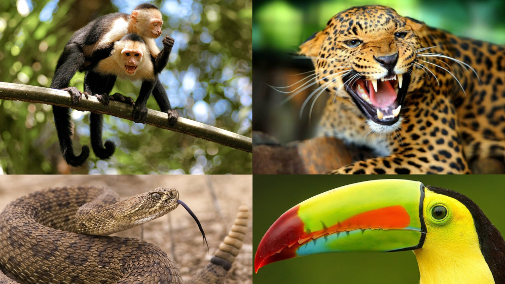 There is a wide variety of animals such as; Sloths, Monkeys, Jaguars, Pumas,Toucans and a large variety of Small Birds, Frogs, Spiders, Reptiles and more