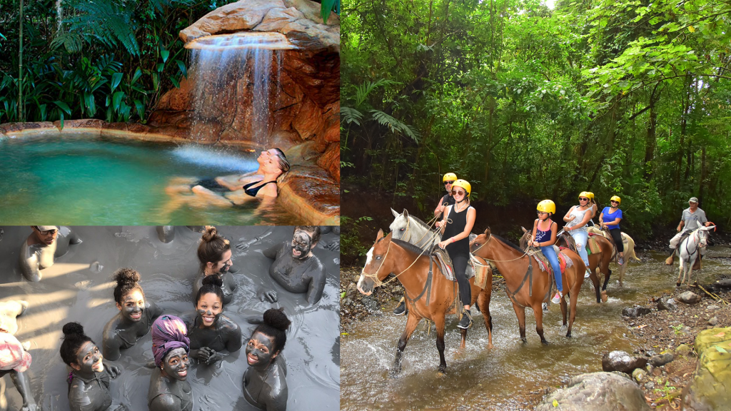 Rincon de La Vieja Adventure Combo is the best all day Volcano Park Combo Tour that includes Ziplining, Horseback Riding, River Tubing, Full Buffet Lunch, Hot Springs, and Volcanic Mud Bath. The Zipline course is one of The Best in the area including a Rappel, Tarzan Swing, and Rock Climbing Wall. The River Tubing is 5 km and has a great Mix of Rapids and Still Waters where you can Float and Admire the Scenery.